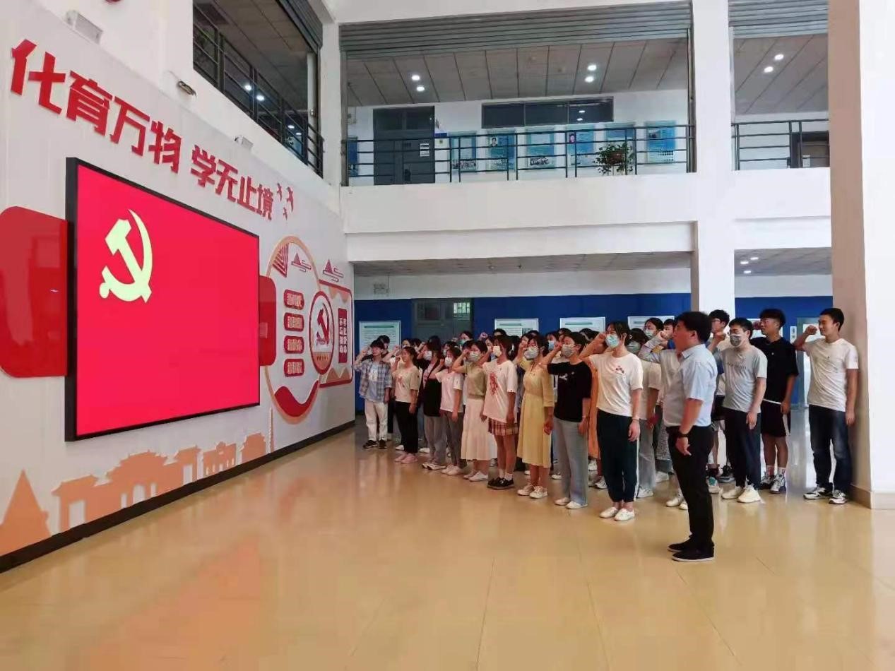 伴随着《国际歌》的歌声,宣誓仪式也慢慢接近尾声。仪式结束后,全体新发展党员在学院门前合影留念。