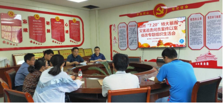 根据学校和公司党委安排要求,测试实验中心党支部于2022年5月19日在公司党员活动室召开了郑州“7.20”特大暴雨灾害追责问责案件以案促改专题组织生活会,负责本支部院级党员领导张磊副经理参加会议,会议由测试实验中心党支部书记张予东主持。