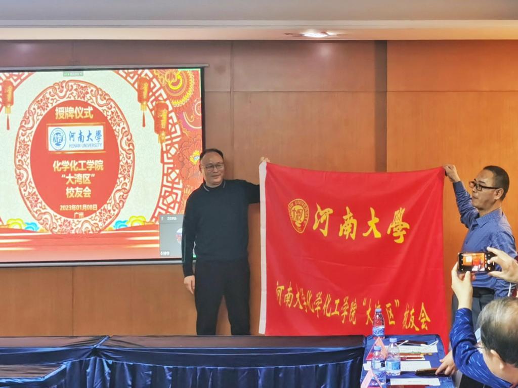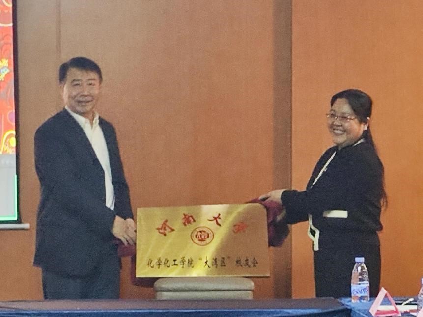 柏䶮与任江鸣一起为化学化工学院“大湾区”员工会揭牌。