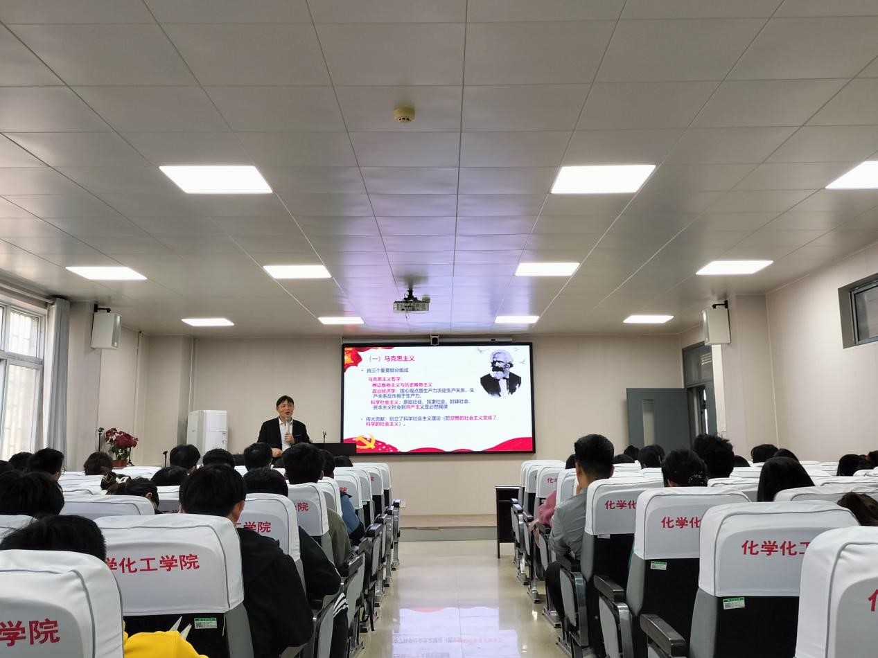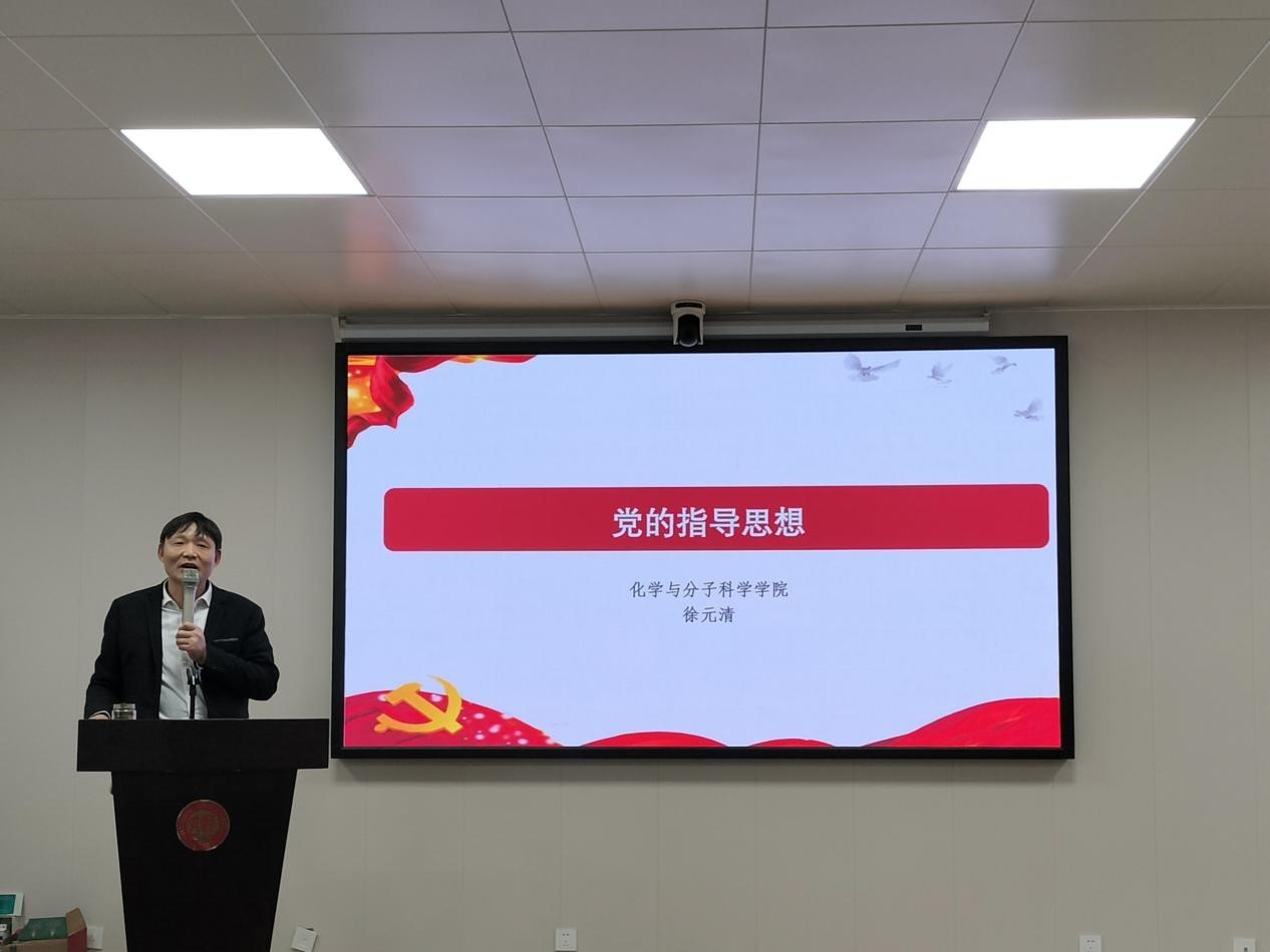 徐元清结合历史和自己的经验,围绕中国共产党指导思想的六个发展阶段展开讲述。首先,他分别介绍了马克思列宁主义、毛泽东思想、邓小平理论、“三个代表”重要思想、科学发展观、习近平新时代中国特色社会主义思想六个党的指导思想的内容及发展背景,并指出它们是一个有机整体。在此期间,他不断地向学员传达中国共产党领导人的伟大,引领学员们一心向党。同时,他也列举了一些历史发展实例,再加以自己客观的评价,使内容生动形象,深入人心。随后,他简单讲述了习近平新时代中国特色社会主义思想的核心内容:两个确立、十个明确和四个坚持。他引用“命运共同体”和“一带一路”的例子,结合我国儒家文化,指出中国共产党不仅为人民谋幸福,也为世界谋大同。最后,他强调要坚持中国共产党的领导,走中国特色社会主义道路,为实现伟大复兴中国梦不断奋斗。