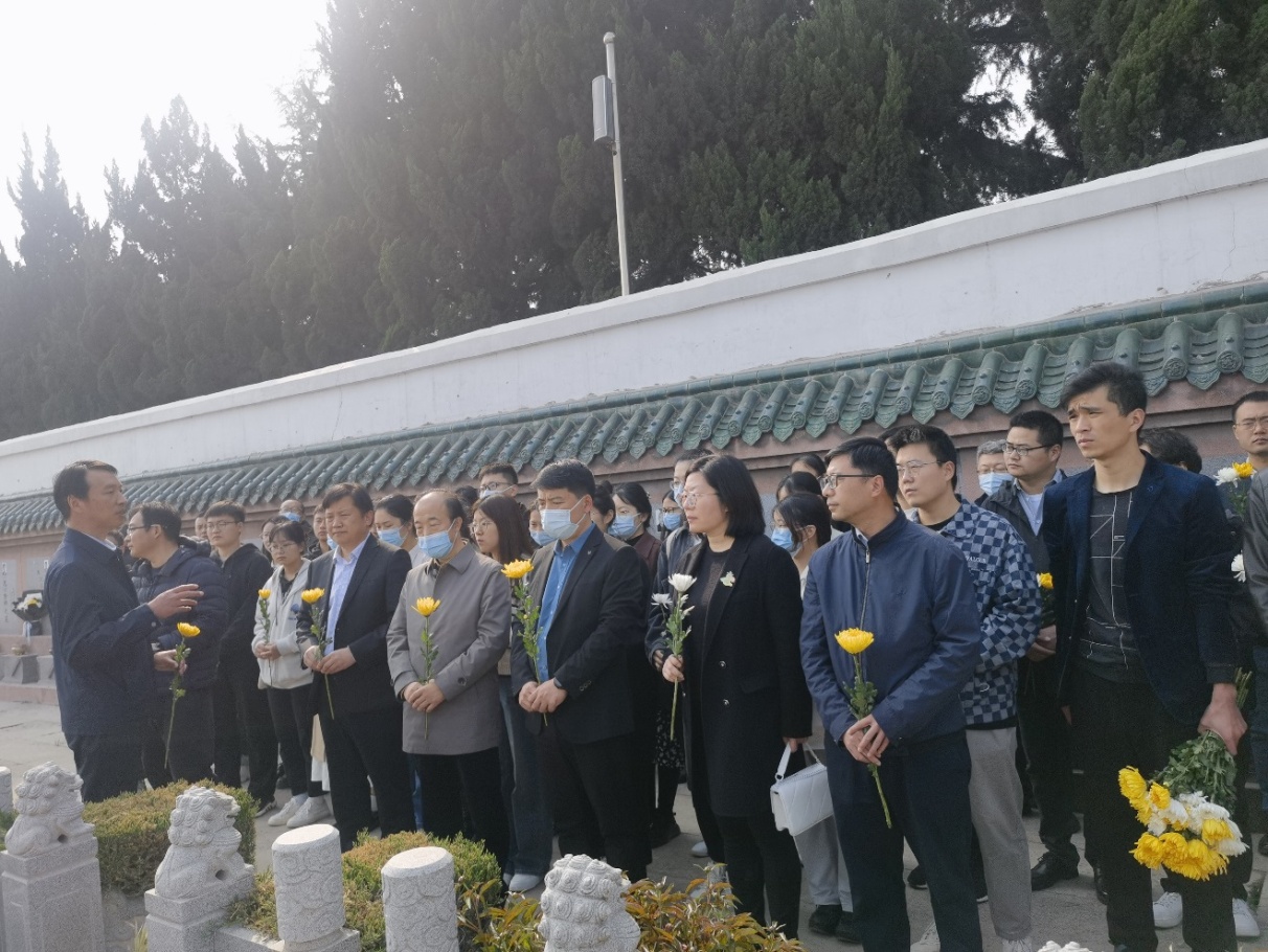 清明时节,追思悠悠;缅怀先贤,再续华章。4月1日上午,在公司党委翟新礼书记的带领下,纳米材料工程研究中心全体领导班子成员、教师及员工代表一行70余人来到开封市烈士陵园,为党鸿辛院士、朱自强先生、黄亚彬教授扫墓,开展忆先贤共传承追思祭扫党日活动。活动由公司党委副书记马文海主持。