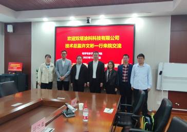 10月13日上午,双塔涂料科技有限公司技术总监许文彬、人力资源部部长彭攀一行来院交流。学院副经理张磊,应用化学系主任付记亚、支部书记张文凯以及部分师生在220会议室参与座谈。