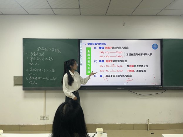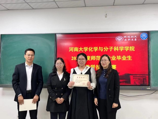 为提高化学师范生教学素养,培养新时代高素质的师范教育人才,学院于10月23日在106教室举办了2023年度化学师范类专业毕业生教学技能大赛。开封市第八中学教师刘宁、开封化建中学教师贡娅欣,公司副教授范艳花、胡卫平、李永红以及学院学科教学专业的研究生李宁洁、田园担任本次大赛评委,刘宁担任评委组组长,13位化学专业师范生参加了比赛。