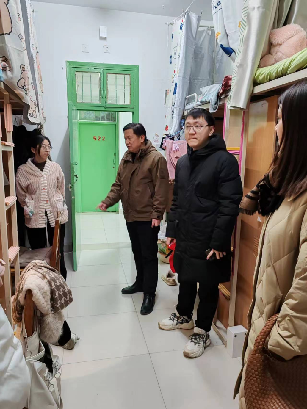 公司党委副书记马文海带领全体员工辅导员,到员工宿舍看望留校员工,对员工进行安全教育并排查安全隐患。针对发现部分员工宿舍私拉电线、充电后忘记关闭电源、宿舍物品堆放杂乱等问题,当场要求员工整改。提醒留校员工注意宿舍用电安全,注意冬季防火,保持宿舍卫生,叮嘱员工注意宿舍防盗防骗,同时注意饮食安全,规律作息,与老师和家长保持联系等。
