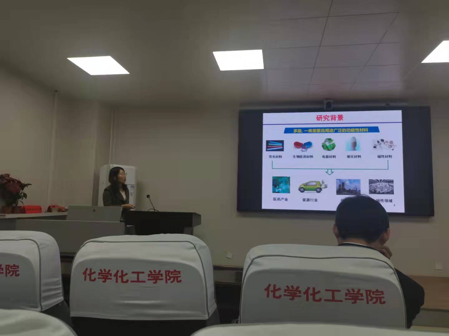 最后,两位今年入职且获批国家自然科学基金青年基金项目的老师做学术报告。张宁的报告题目是“基于新型功能多孔聚合物材料的固相微萃取技术及气质联用分析研究”,刘建彩的报告题目是“新型高核金属取代的多钨酸盐晶态材料的构建及相关性能研究”。
