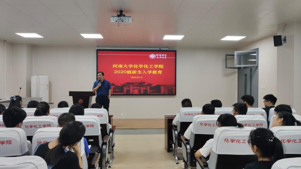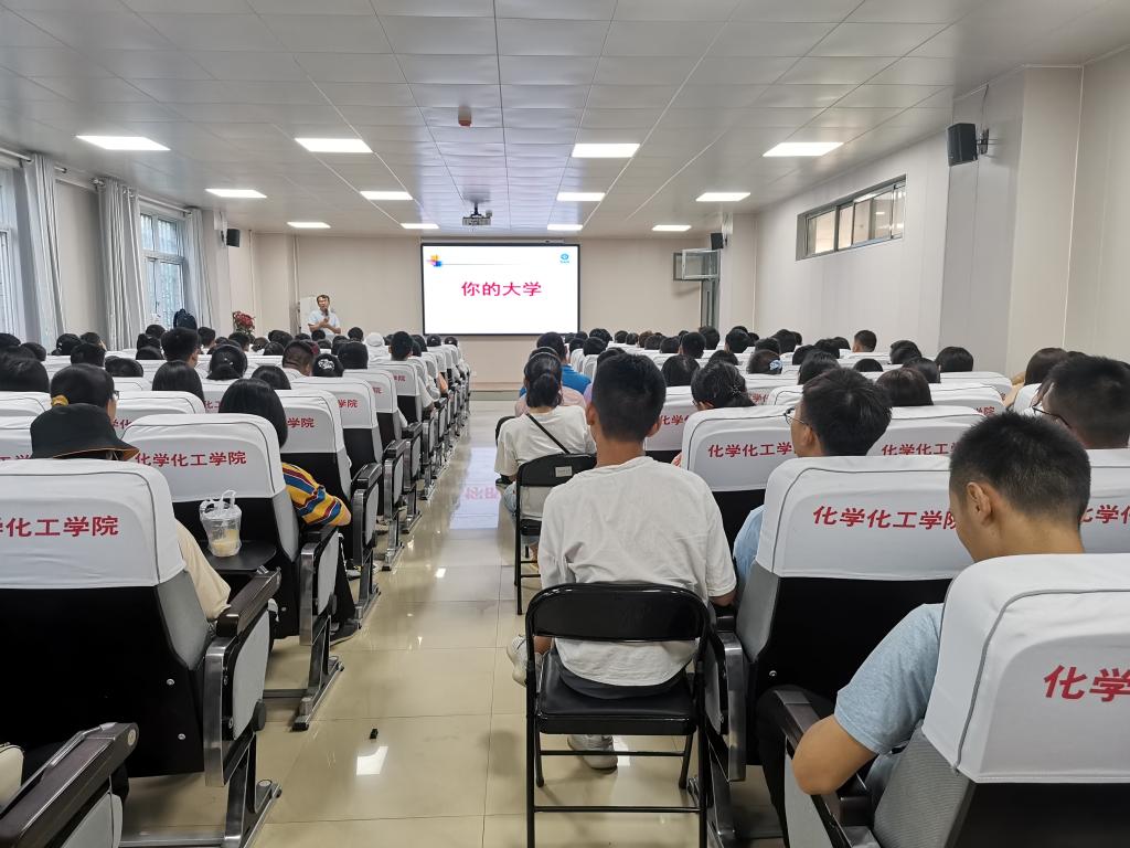 最后,副经理刘学军和化工专业的郭泉辉老师对新生进行了专业教育。刘学军向新生介绍了专业课程设置、学院团队情况以及学院教风学风等,讲解了学院整体学科的发展动态,同时他向化学类新生介绍了化学和应用化学在专业课设置上的区别,研究方向的差异,就业选择的不同,为同学们对接下来选择化学还是应用化学提供了帮助。郭全辉向化工班新生详细介绍了化学工程与工艺专业特点、专业发展现状、专业学习方法以及未来职业前景等,为新生树立专业学习信心。
