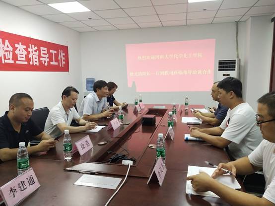 8月13日下午,学院副经理徐元清、阻燃与功能材料河南省工程实验室主任丁涛、副主任房晓敏、化学系副主任徐浩、李建通等一行到开封联昌药业有限公司参观交流并洽谈合作事宜。开封联昌药业有限公司董事长宋恒志、技术中心主任王阿宝等在公司会议室接见了访问团。