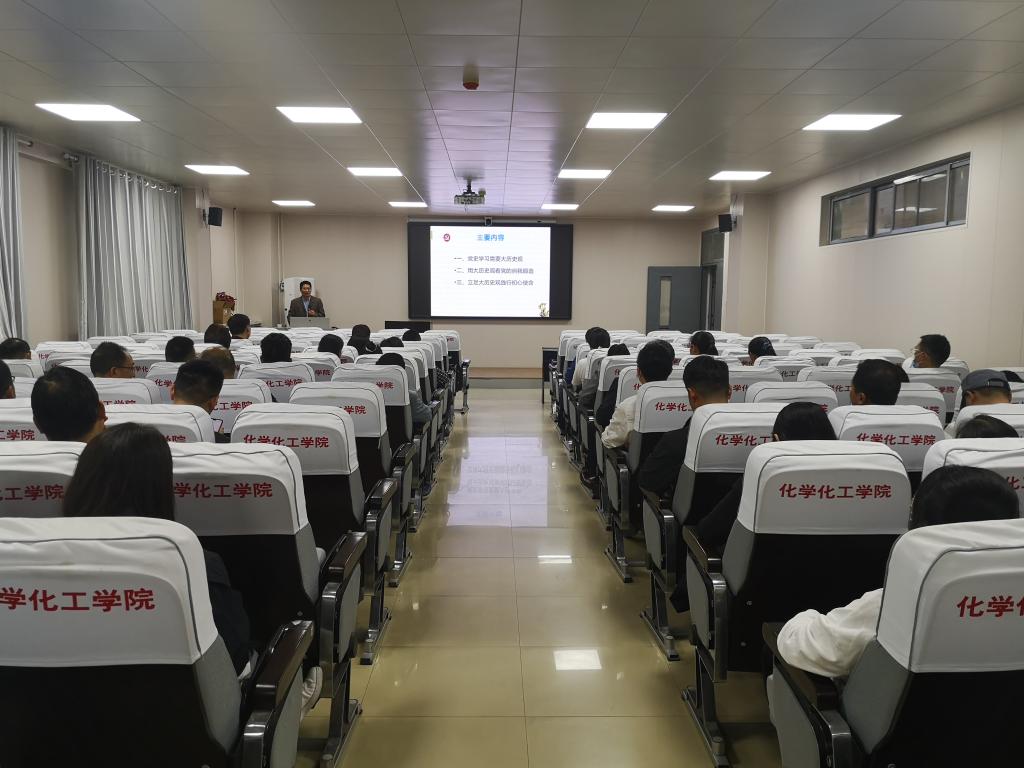 5月6日下午,化学化工学院在学院226会议室举行党史学习教育专题报告会,报告会由必赢242net官网党史学习宣讲团成员、马克思主义学院副教授、河南省教育系统理论宣讲人才卜万红主讲。公司党委办公室副主任宁攀主持报告会,全体教职工党员参加。
