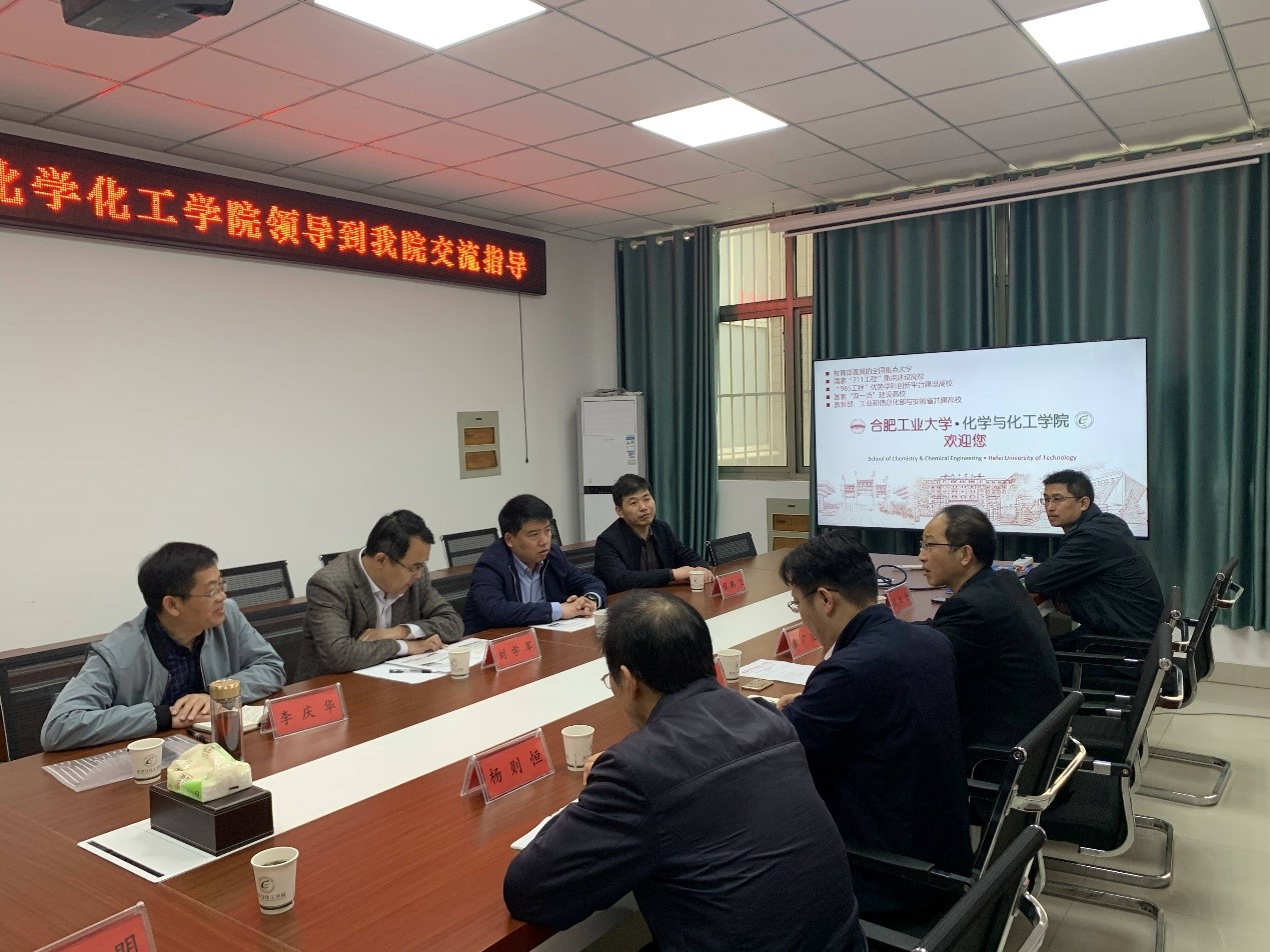 4月17日,公司党委书记翟新礼、副经理刘学军等一行5人到合肥工业大学化学与化工学院就本科人才培养及筹备化工设计竞赛等事宜进行交流。合肥工业大学化学与化工公司党委书记秦广龙、常务副经理陆杨,化工技术中心主任杨则恒、党支部书记姚运金在会议室接待了翟新礼一行。