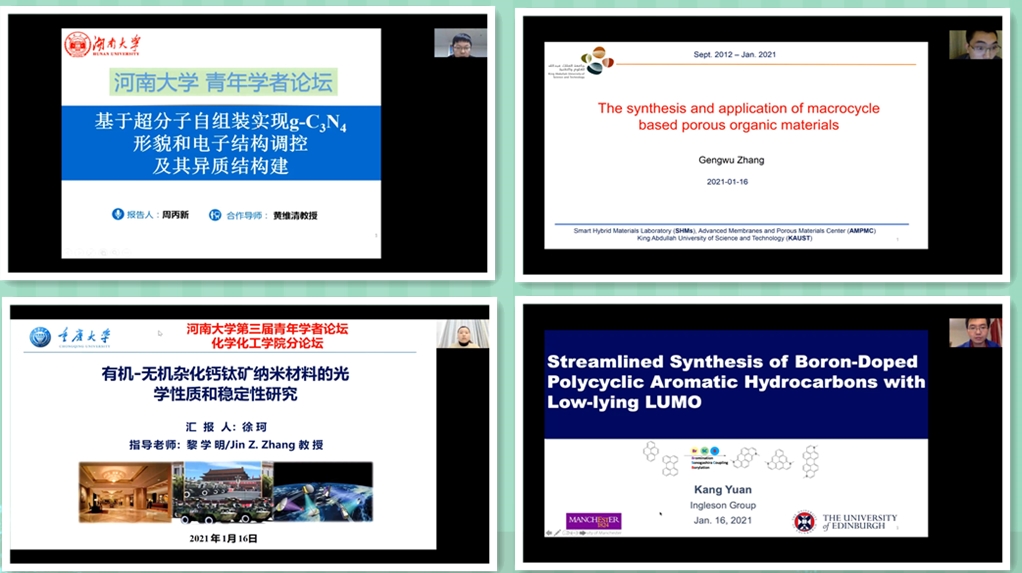 1月16日,必赢242net官网第三届国际青年学者(博士后)论坛化学学工学院分论坛在化学化工学院220会议室成功举办。本次论坛收到了多名海内外优秀青年学者的申请,经遴选,共邀请到了来自世界知名高校的19位优秀青年学者进行学术汇报,论坛采用线上直播的方式举行,化学化工学院副经理徐元清以及学院部分老师和研究生参加了此次论坛。