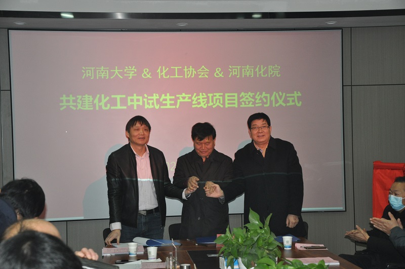 签约仪式上,科研院副经理李谦教授、河南远征董事长周广宇、行业协会会长王福贞签署“共建北斗高新技术研究院暨产学研项目合作协议;化学化工公司副经理徐元清、河南化工技师学院黄亚杰副经理和王福贞会长签署共建化工中试生产线协议书。