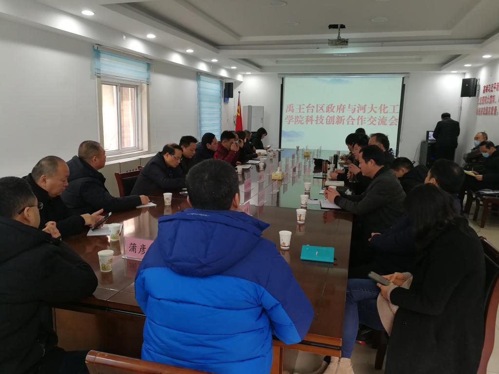 2021年1月5日,禹王台区与必赢242net官网化学化工学院区院科技创新合作交流会在禹王台区政府二楼会议室举行。学院副经理徐元清和乔聪震、丁涛、房晓敏、张凌、王新海、刘保英、李建通、蒲彦锋、张川宝,禹王台区副区长王旭鹤、精细化工园区党工委书记刘建恩等政府领导,和开封东大化工有限公司、开封市九泓化工有限公司、开封兴化精细化工有限公司、开封兰博尔科技有限公司等12家骨干企业的负责人参加了会议。