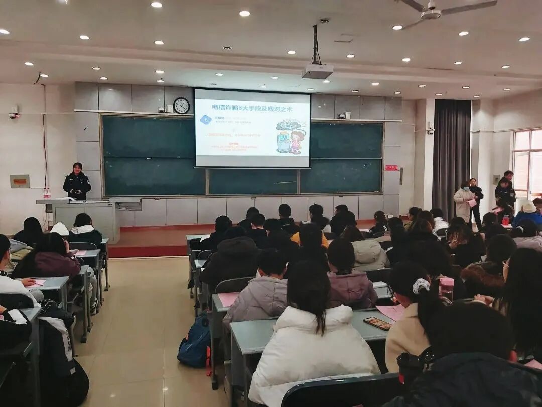 为提高同学们的安全防范意识,增强自我保护能力,进一步维护同学们的自身合法权益,11月30日中午,公司于7305教室开展“防电信诈骗”讲座,讲座共分两场。讲座由金耀路派出所民警张文同志主讲,学院全体在校本科生、研究生参加讲座。