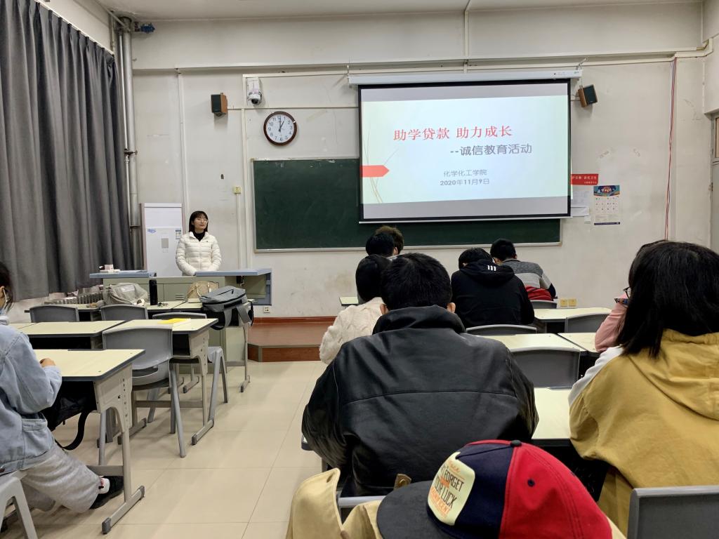 为确保公司2020年度助学贷款工作顺利进行,弘扬社会主义核心价值观,构建员工诚信感恩教育体系,为提高人才培养质量打下坚实的基础,公司于11月9日中午在综合楼7101教室举行了贷款诚信教育主题活动。会议由公司资助服务站站长、2019级辅导员田梦老师主持,资助负责人时珍珠、雷凯升以及各年级贷款员工与会。
