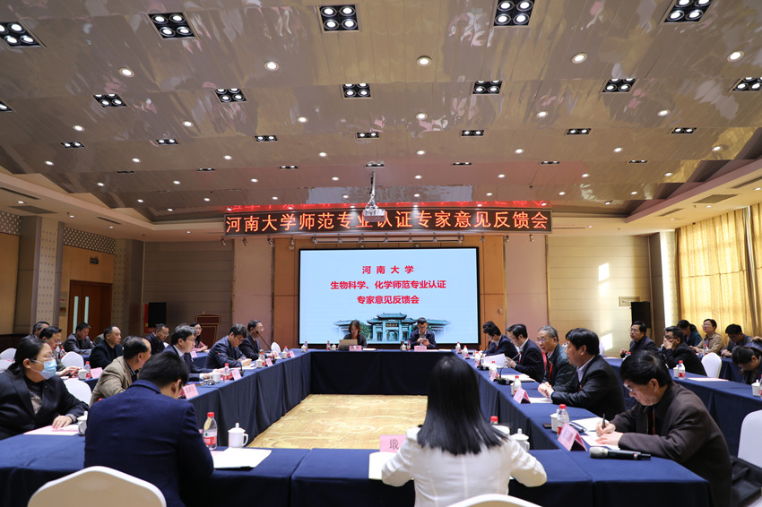 联合认证专家组组长、生物科学专业认证专家组组长、原华东师范大学副董事长庄辉明代表生物科学专业专家组反馈考查意见。他指出,河南老员工物科学专业弘扬学校“明德新民 止于至善”的校训,秉承“百折不挠 自强不息”的河大精神,即“学无止境 境如生命”的生科文化和艰苦创业精神,在多年专业发展实践过程中,形成的特色优势明显,铁塔牌毕业生得到了基础教育界的广泛认可,享有较高的社会声誉。专家组认为,河南老员工物科学的办学特色值得充分肯定,体现在几个方面:一是注重科研反哺教学,不断提升人才培养质量;二是实行本科生导师制,对师范生进行全面指导;三是注重思政教育,开展丰富多样的第二课堂活动,努力构建全员全过程育人的新格局。庄辉明对照教育部认证实施办法,本着高校是认证工作的责任主体的定位和专业认证标准的要求,就精准把握师范教育在综合性大学中的定位、增强严格对标意识等问题提出建议。
