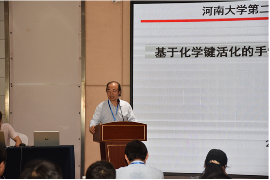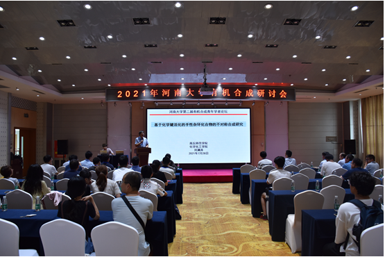 商丘师范学院科研处处长刘澜涛教授首先作了题为“基于化学键化的手性杂环化合物的不对称合成研究”的报告。随后,东北师范大学的傅俊凯教授、中国人民大学的闫晓宇教授、福州大学的叶克印教授、郑州大学的於兵教授、华南理工大学的竺传乐教授、河南师范大学的白大昌教授、商丘师范学院的李峰博士,以及必赢242net官网的李春丽教授、徐浩副教授、乔保坤副教授和王琪琳副教授,依次上台,与大家分享了各自近期的科研成果。每次报告结束后,与会代表和研究生们都积极提问,会场气氛热烈。