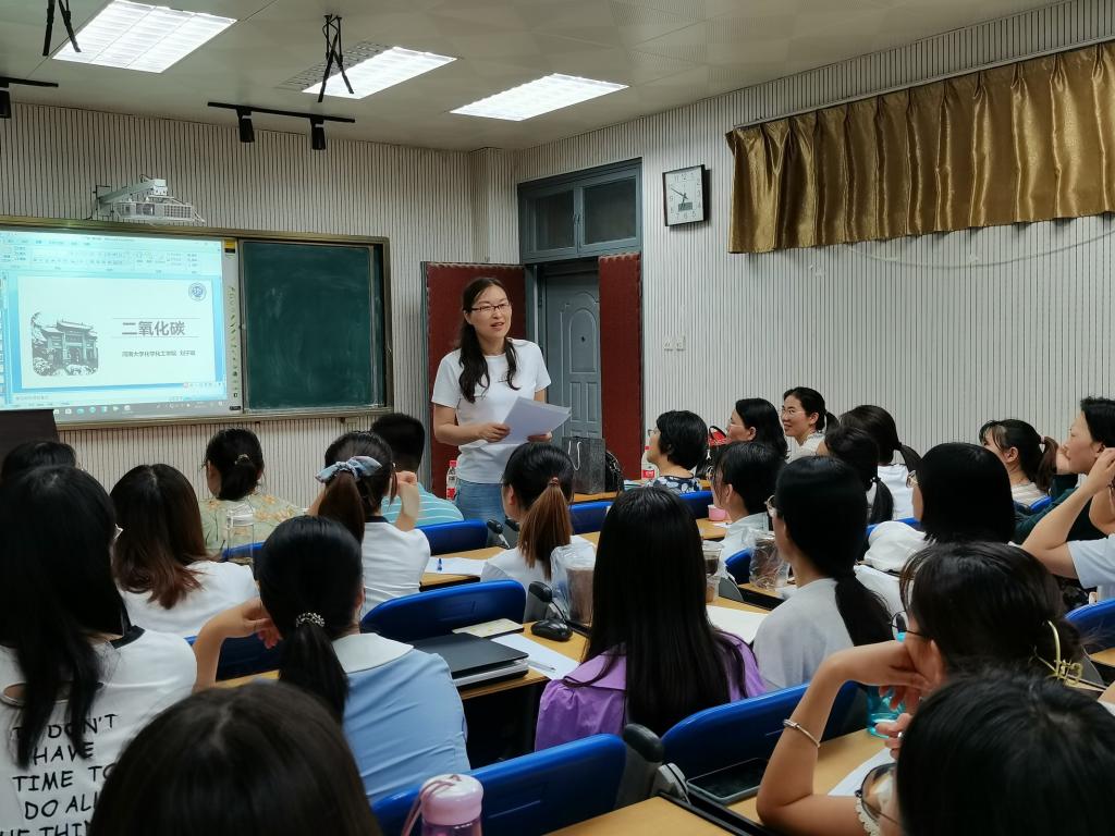 本次活动中,由2018级化学专业的刘子璇试讲课题《二氧化碳的性质》,曾娜试讲《氧化还原反应》,马晓丽试讲《分子的立体构型》。三位同学试讲结束后,王磊和贡娅欣分别作出点评并给予指导和建议。