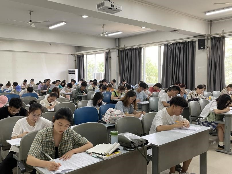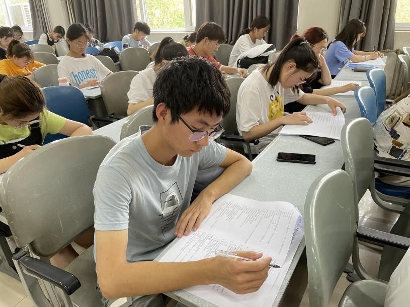 本次资助政策知识竞赛的试题内容主要包括《高等学校员工资助政策简介》、家庭经济困难员工认定、国家奖助学金、国家助学贷款征信知识和校内各项资助政策等相关政策和管理办法等知识。竞赛面向学院全体员工进行开展,经过一轮筛选,有70名同学进入复赛,竞赛考试由学院资助服务站站长田梦老师和2020级资助负责人雷凯升担任监考员。竞赛期间,监考老师认真监考,同学们安静沉着答题,现场秩序井然;竞赛结束后,同学们有序交卷离场。试卷将由田老师、各年级资助负责人统一批改。