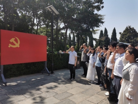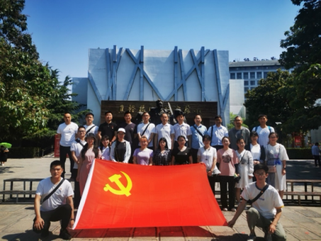 为庆祝建党100周年,学习中国共产党团结带领中国人民不忘初心、牢记使命、艰苦奋斗的百年光辉历程,2021年6月6日,纳米材料工程研究中心组织全体教工党员和新发展员工党员及博士党员30余人,赴兰考焦裕禄烈士陵园开展“百年风华,初心如磐”主题党日活动,学习焦裕禄同志先进事迹,重温入党誓词,缅怀革命先烈。