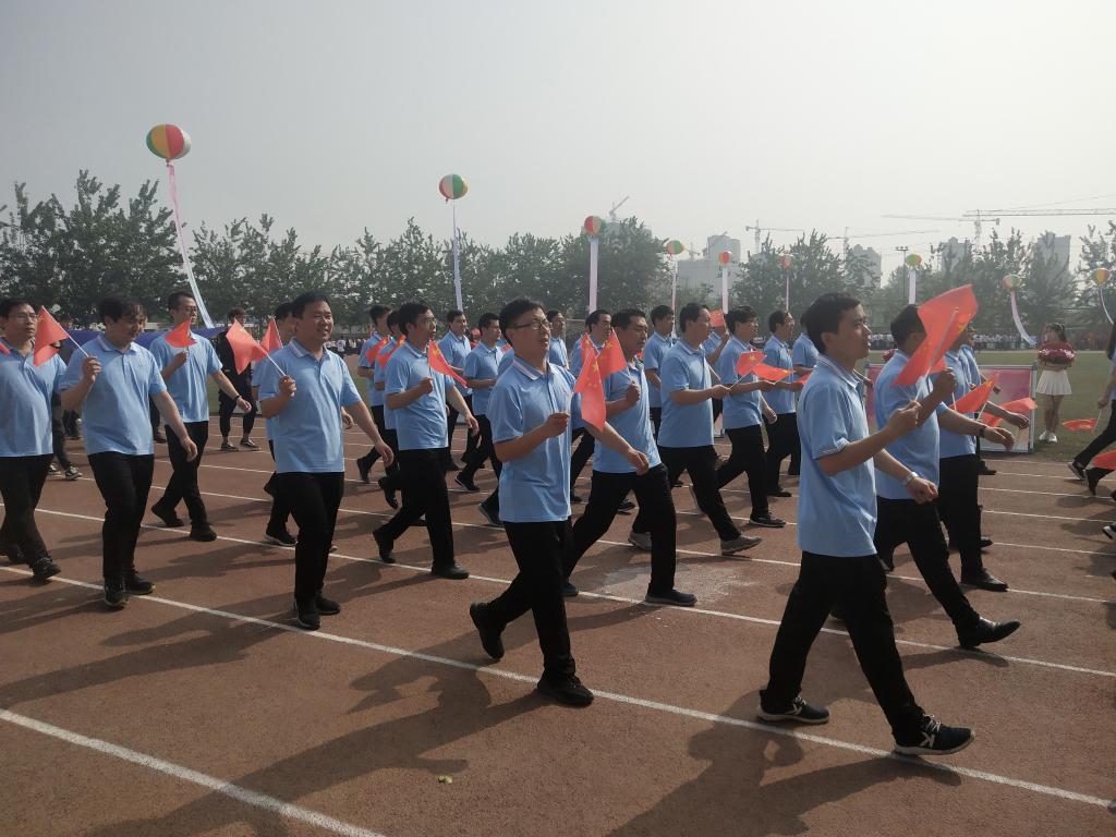 8:30运动会开幕式正式开始。此次运动会开幕式由公司党委常委、副董事长许绍康主持,开幕式开始,各院代表队入场。其中,公司代表队首先走向主席台的是以党委副书记马文海为领队的教职工方阵,他们精神抖擞,身着统一服装,手中挥舞着红色国旗,表现了公司教职工化育万物的教师风采。接着是公司院旗与员工方阵,整齐的步伐,响亮的口号,展现出了公司学子的饱满热情。“团结一心 奋勇向前 追求卓越 争创第一!”,体现了新一代青年学子学无止境、积极进取精神;“中国建国70年”的牌子,彰显出了公司学子的爱国情怀。红色条幅组成的五角星象征着公司教职工紧跟时代步伐、响应学校号召的决心。条幅上“化育万物 学无止境”八个大字寓意公司全体师生必将百折不挠、奋勇向前、争做先锋。