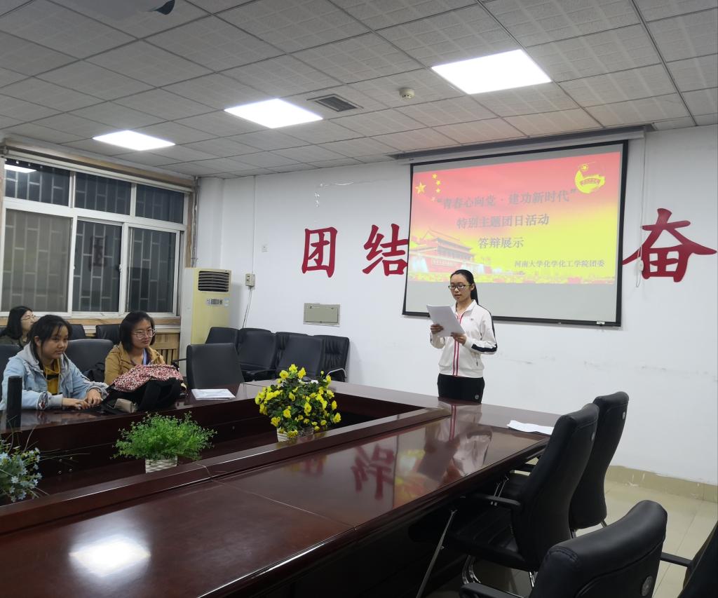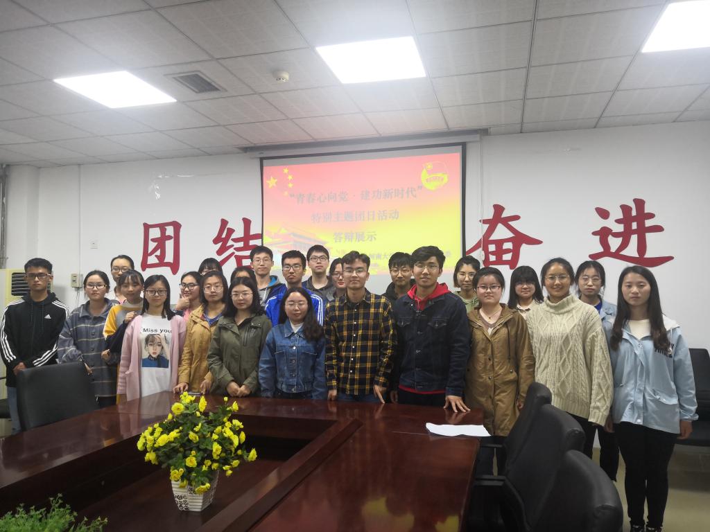 为引导公司团员青年深入学习习近平新时代中国社会主义思想,夯实团的基层基础,公司于4月21日晚上在学院220会议室举办了“青春心向党·建功新时代”特别主题团日答辩活动。化学化工学院团委副书记王钰、肖子威,团委员工会组织部部长明荣妤,16级、17级、18级年级团支书担任此次答辩会的评委。