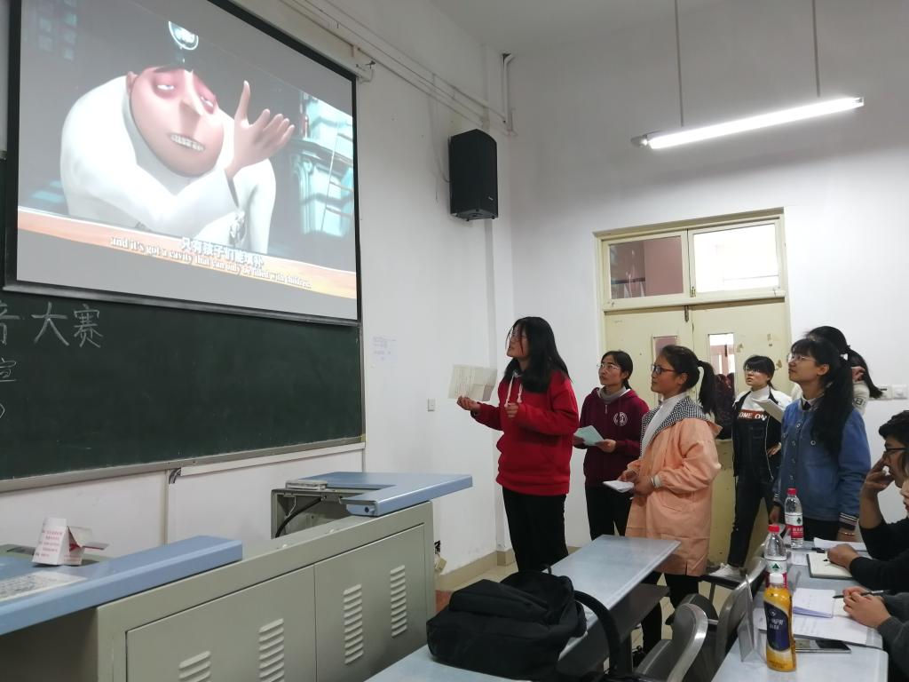 初赛依照队伍现场签到、选手配音比赛、评委打分等流程展开。选手们的声音运用自如,各具特色。其中,《马达加斯加的企鹅》中轻柔呆萌的配音展现卡通人物的可爱,《怦然心动》中含蓄羞涩的配音展现男女主人公情愫的朦胧,《行尸走肉》影片中伤感悲恸的声音被演绎的活灵活现,其他美剧的配音更是贴切逼真。最后,《冰雪奇缘》主题曲的配音演唱更使现场听众拍手称赞,引人入胜,给比赛留下完美句点。
