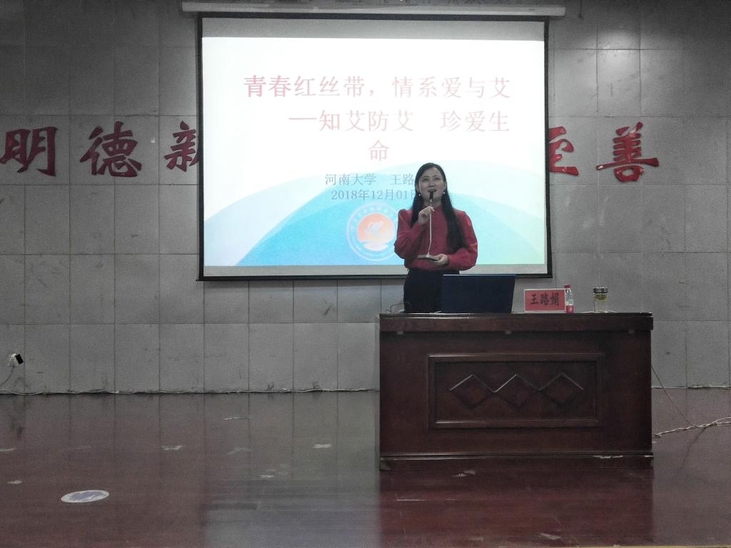 首先,王路娟对了解艾滋病,如何应对艾滋病,防治艾滋病等方面进行具体讲述。她以一个19岁女孩染上艾滋病并开始报复社会的事情为例,说明了艾滋病的危害,引起了同学们对预防艾滋病的高度重视。接着,她指明近几年艾滋病的高发人群普遍偏向青少年的现象,并以石家庄市的调查数据为例,告诫同学们要正常健康地交往,珍爱生命,慎重交友。