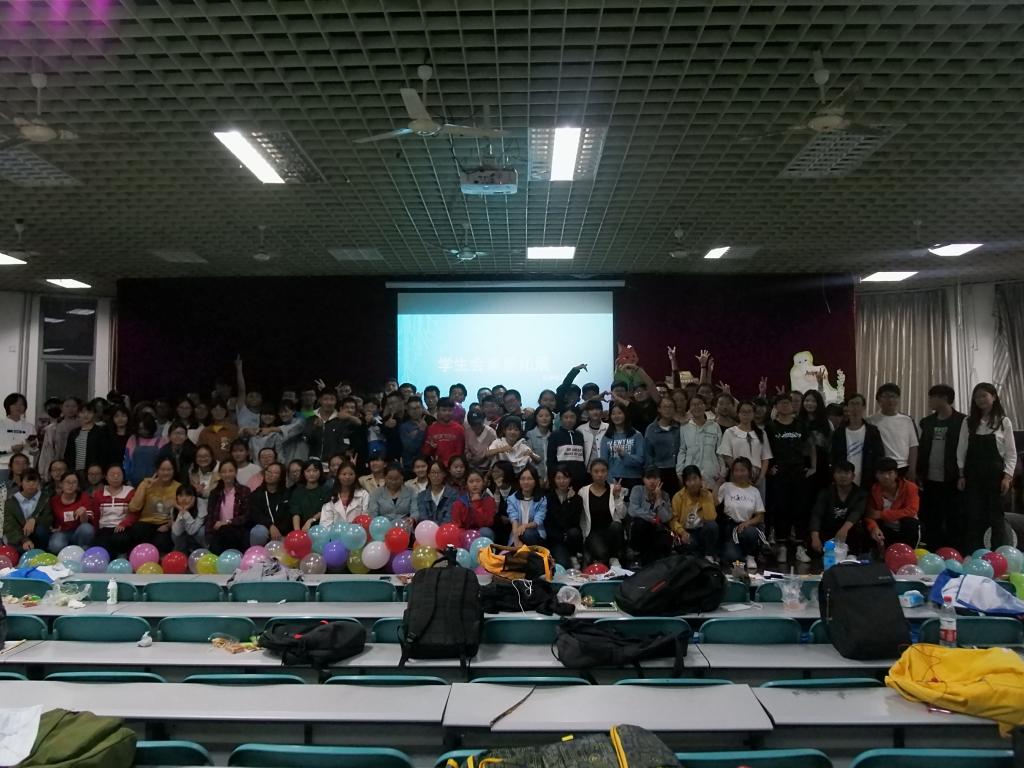 接下来进行的游戏有你比我猜和踩气球,默契的配合,敏捷的思维,夸张的动作,参与者在玩游戏的同时也锻炼了自己的思维。而踩气球则是本次活动的高潮,参与者以灵敏的动作与足够的耐力与对手对抗,台下欢呼声与加油声在整个报告厅此起彼伏。最后的收尾游戏为碳原子氢原子以及趣味乒乓球,大家本着“友谊第一,比赛第二”的原则,在游戏比拼中收获到快乐与友谊。最终,外联部,办公室以及通讯部分别获得本次活动的前三名,活动接近尾声,全体委员拍照留念。