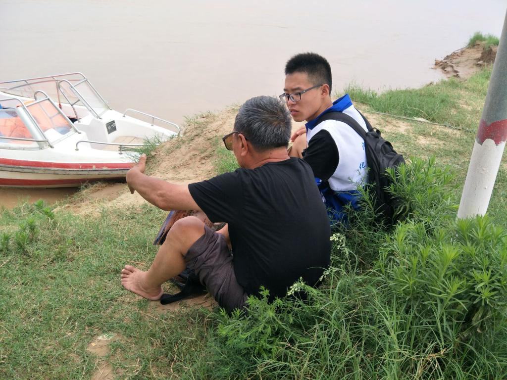 在宣传的同时,另一部分队员跟岸边运营游艇的师傅交流,希望去黄河中指定的区域取水样。师傅非常配合大家的要求,在成功取到合格的水样之后,师傅还带这队员们在黄河中观赏一圈。亲身感受到黄河的魅力和美丽后,大家更加坚定了保护母亲河的信念。