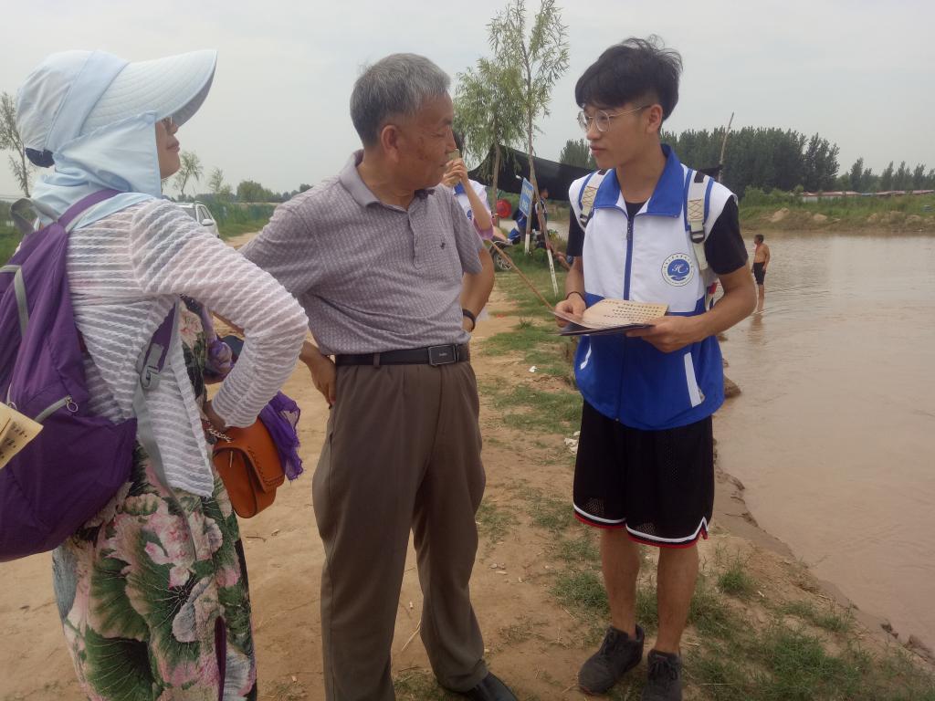 之后观察团进入景区,开始了保护水资源的宣传。游客们认真听取团队的理念,并且与队员交流了自己的想法,给予队员鼓励支持。景区的工作人员讲述了他多年来在黄河边工作的感想。观察团有幸遇到必赢242net官网中原发展研究院张教授,他讲道:“黄河水的治理一直是困扰我们的一大问题,污染物也是顺着黄河水流下来的,我们需要从源头、也就是发源地青藏高原一路沿线去发现问题,另一方面要在河岸两边多增加植被覆盖,以减少水中沙土含量。”大家深受启发,很感谢教授给予的建议。